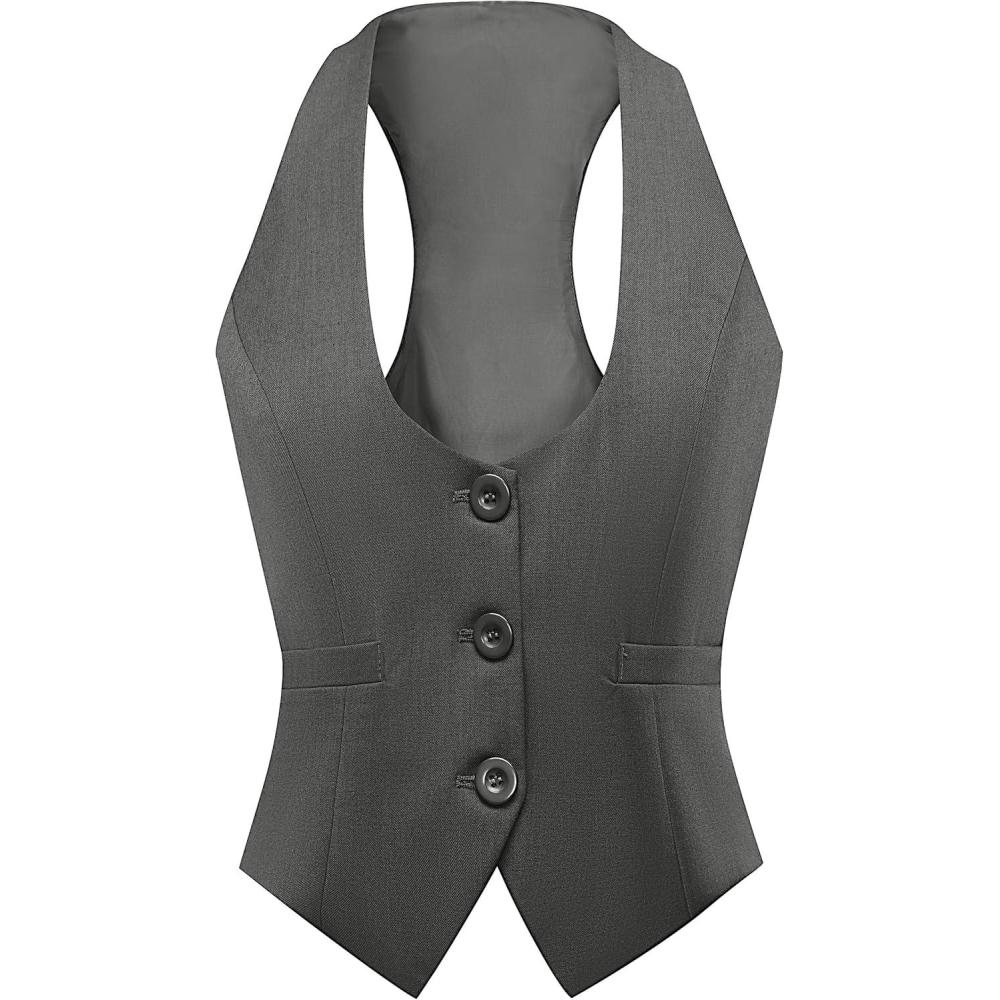 Foucome Vest for Women Dressy Casual Suit Vests Versatile Steampunk Racerback Waistcoat Vest Tops(Grey)