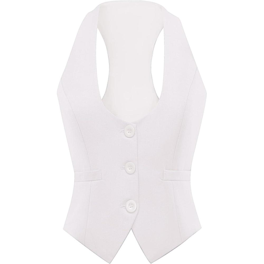 Foucome Vest for Women Dressy Casual Suit Vests Versatile Steampunk Racerback Waistcoat Vest Tops(White)