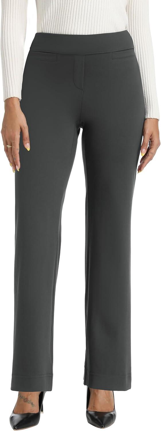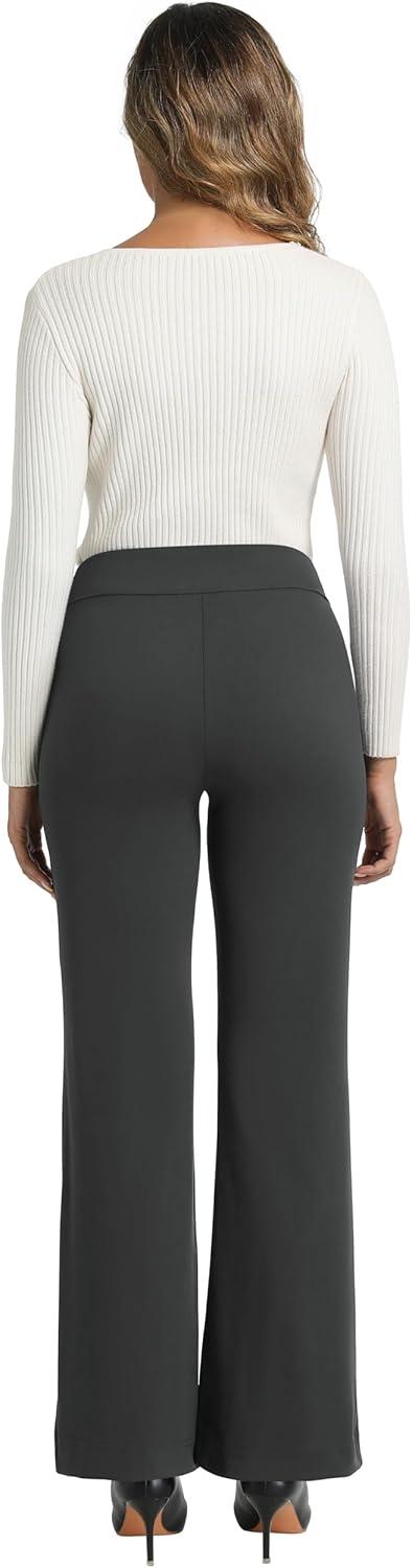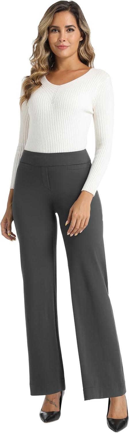 Foucome Womens Dress Pants Wide Leg Stretchy Pull On Work Pants Business Office Casual Ladies Slacks with Pockets(Dark Grey)