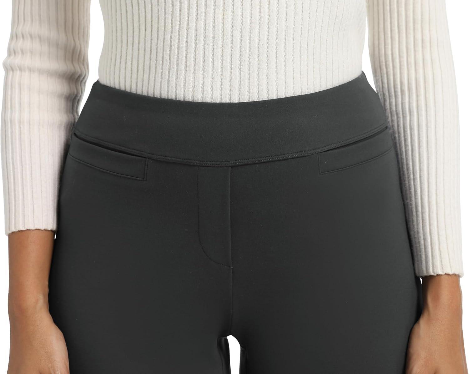 imageFoucome Womens Dress Pants Wide Leg Stretchy Pull On Work Pants Business Office Casual Ladies Slacks with PocketsBlack