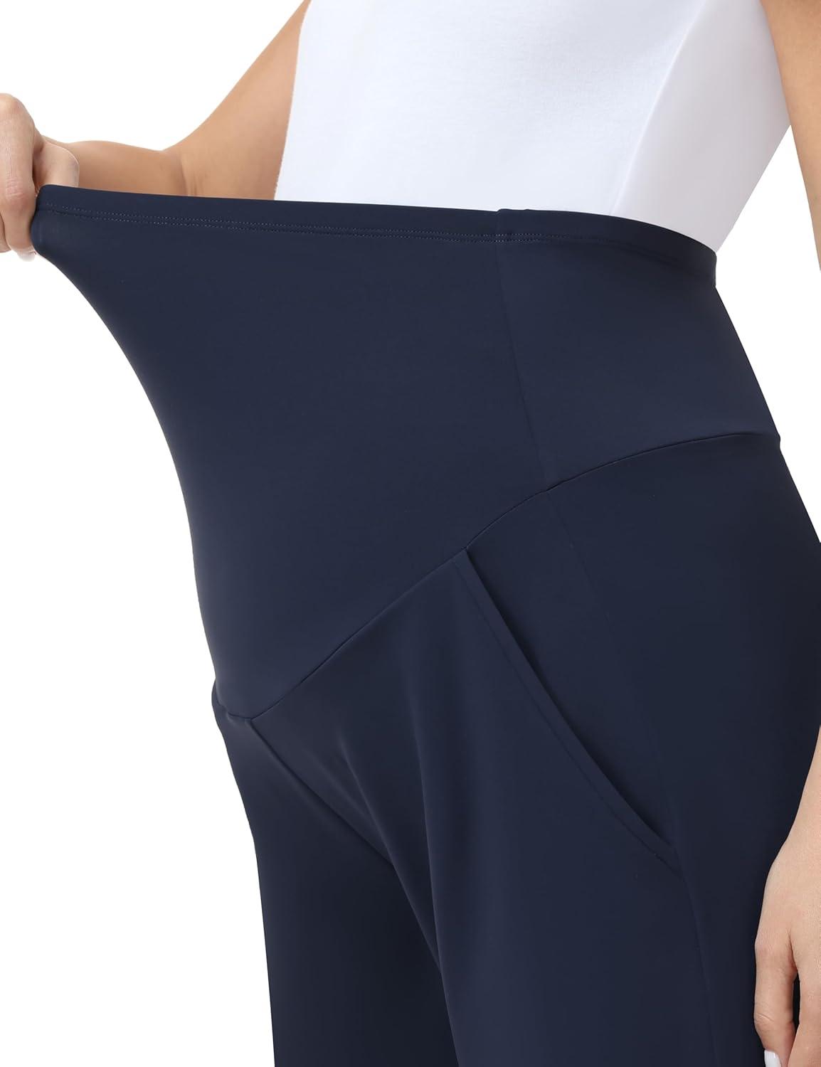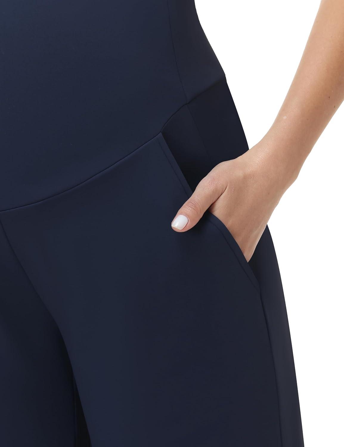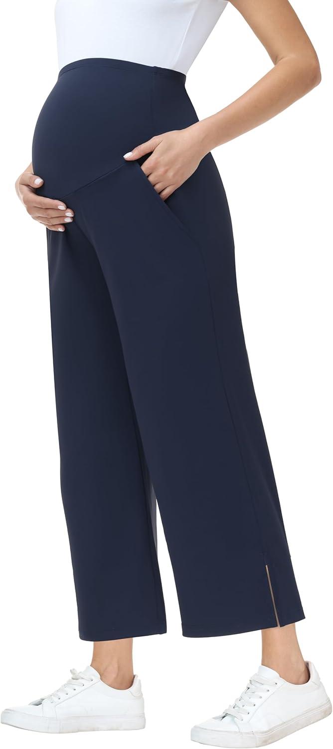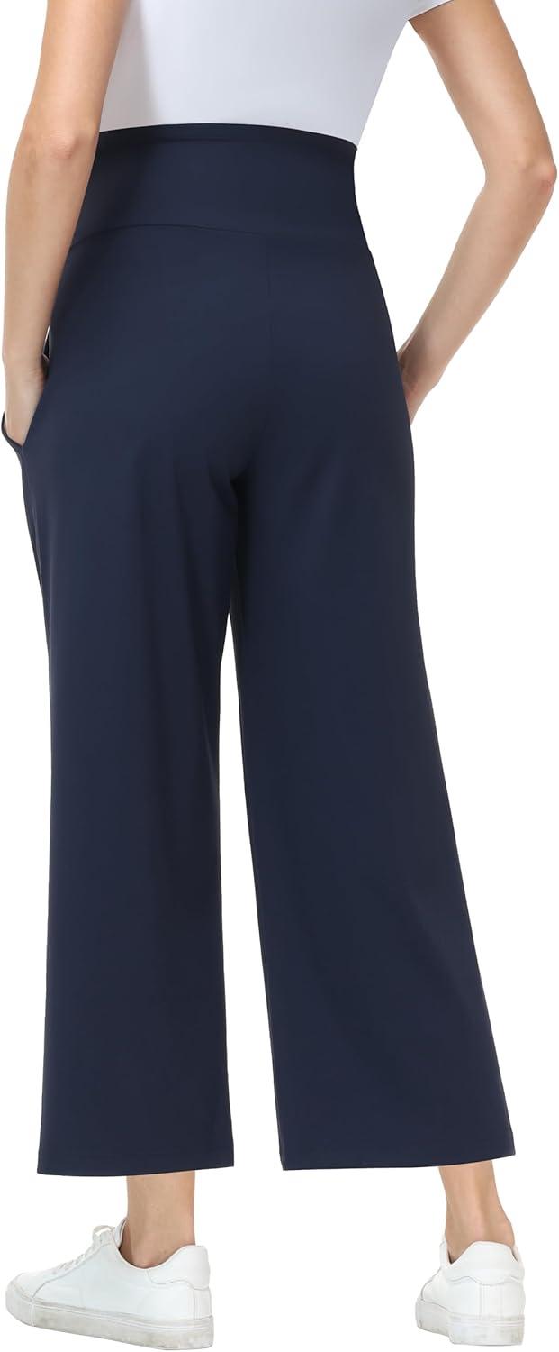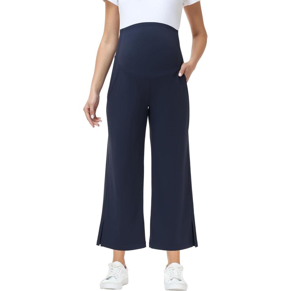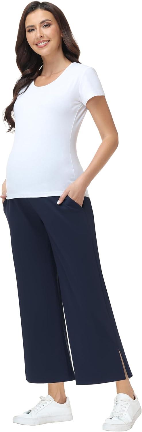 Foucome Women’s Maternity Capris Wide Leg Yoga Sweatpants Loose Pregnancy Casual Lounge Work Cropped Pants(Navy Blue)