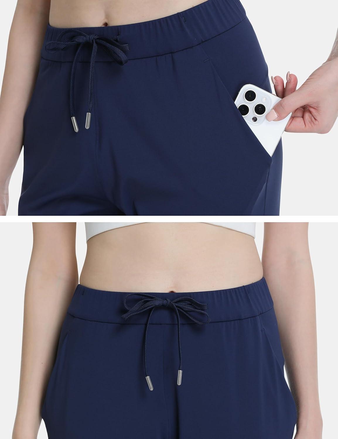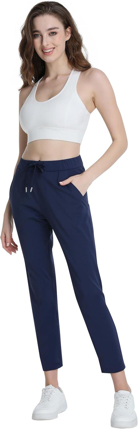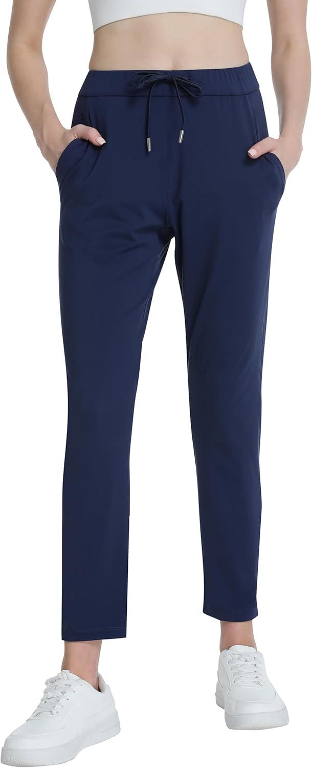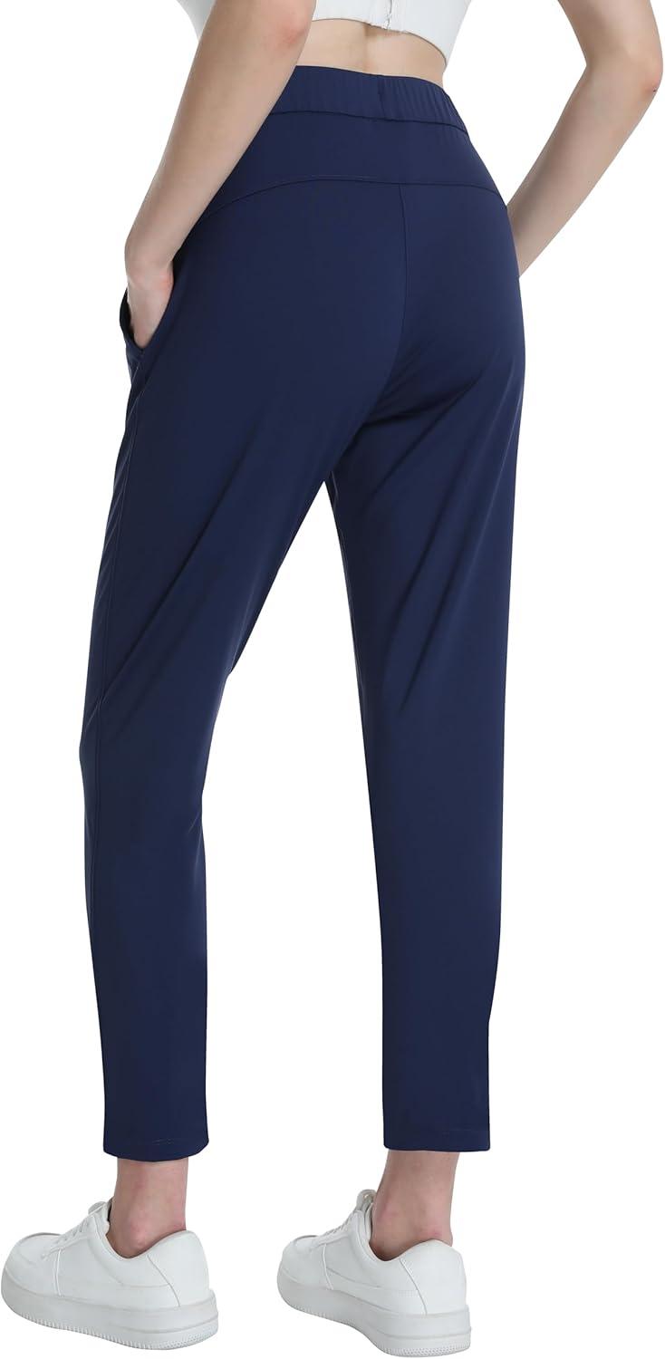 Foucome Women’s Pants Ankle 7/8 Golf Pants Stretchy High Waist Sweatpants with Pockets for Athletic, Lounge, Travel, Work(Navy Blue)